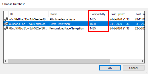 After clicking on OK and authenticating to the Power BI Service, we have to choose the database we want to connect. Since we will use both read and write functionality in this step-by-step guide, we have to make sure that we work with the correct compatibility level. Make sure the model is in compatibility level 1520.