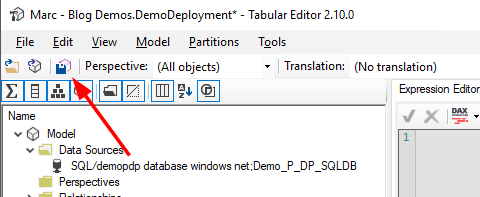 As a final step, we have to save the changes we have made to the model in the Power BI Service. Here the XMLA Write capability comes in. In Tabular Editor we can click the small save button on the left top to save our changes to the Power BI Service.
