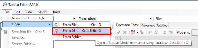 We start off by creating a connection to our existing data model in the Power BI Service. After opening Tabular Editor, we choose