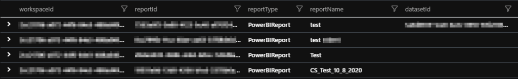 In Azure Log Analytics, you can write Kusto Queries to get the data out and directly analyze it in the tool itself, and so I did. My goal was to see if the information about the broken reports was stored in Log Analytics and if I could get the Report Ids there. I used the following Kusto query to get the information out.