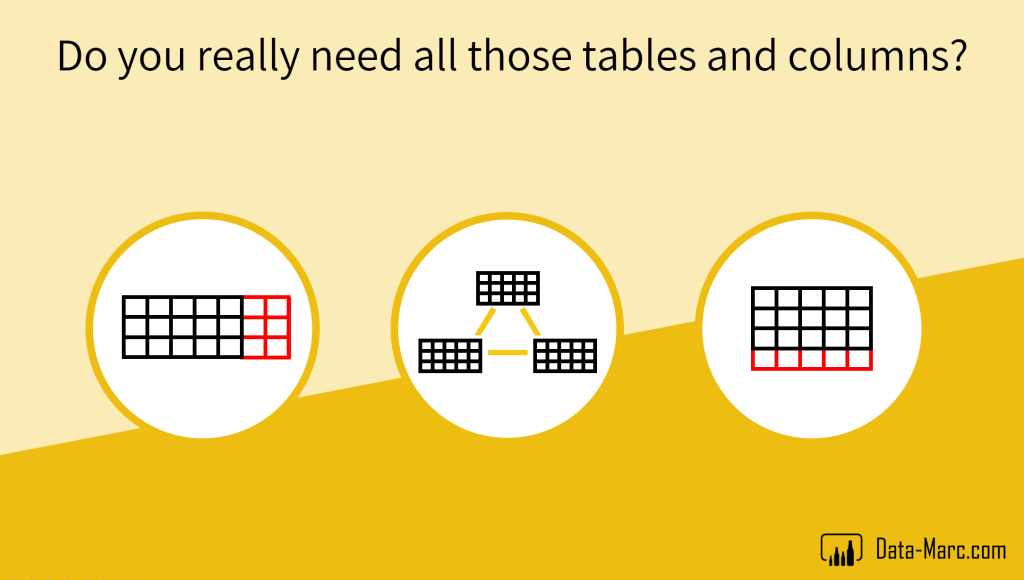 Remember as I highlighted before, the design principle was to not have any transformations in Power BI, and since those columns were in the views coming from the data platform, it was not prioritized by the product owners to drop the columns that were not necessary. Instead, a simple and quick fix could have been applied by the Power BI developer to only select the required columns by using the Table.SelectColumns function in PowerQuery. The query would have been optimized by query folding and actually dropping the columns from the views by the data engineers could have been put on the backlog for later. To avoid breaking the solution when the data engineers dropped the columns, it is important to use the Table.SelectColumns instead of Table.RemoveColumns as the latter function hardcodes the column names that will be dropped. As a result, the next refresh will fail. Just a little thing to keep in mind and avoid the error at that time.