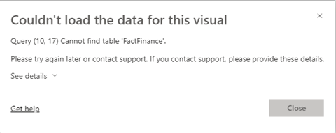 For this role, a visual which uses FactFinance table data will throw an error, OLS works as intended.