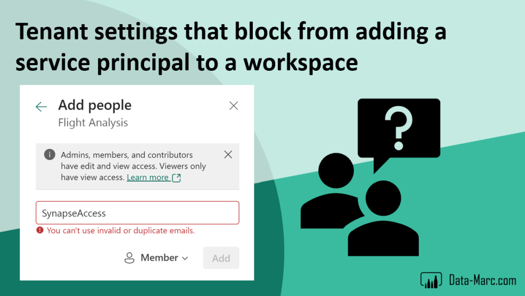 Today, I run into an issue by adding a service principal to a workspace. To my experience so far, this should be straight forward and a matter of adding with the right permissions in the workspace settings. However, for some reason I couldn’t get it to work. In this blog I will elaborate on what caused this issue and which tenant setting influences this.