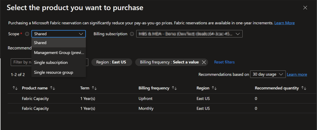 If you’re completely new to Reserved Instances, I would recommend reading this documentation about Azure Reservations to get more familiar with the concepts. In specific for Fabric capacities: