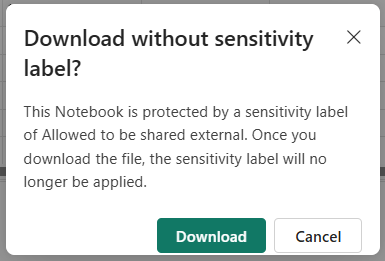 While exporting, another warning shows up. As you can see in the screenshot above, I’m using Sensitivity Labels and I enforce labeling on all items in Fabric. The current applied label is Allowed to be shared external as I use this Notebook for public demos and blogs like this one. The warning returned by Fabric, tells me that the label will be removed from the Notebook while exporting.